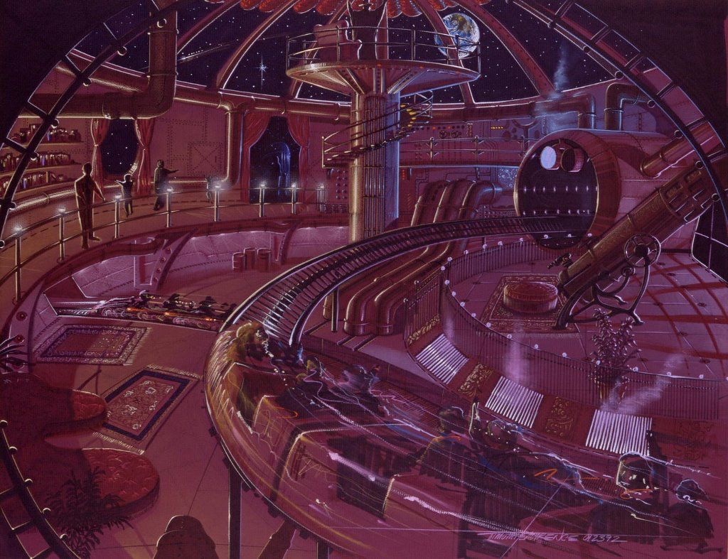Disney engineers had planned a huge pavilion that would connect to the Videopolis theatre/restaurant and contain several rides. Here are some concept drawings for that space.