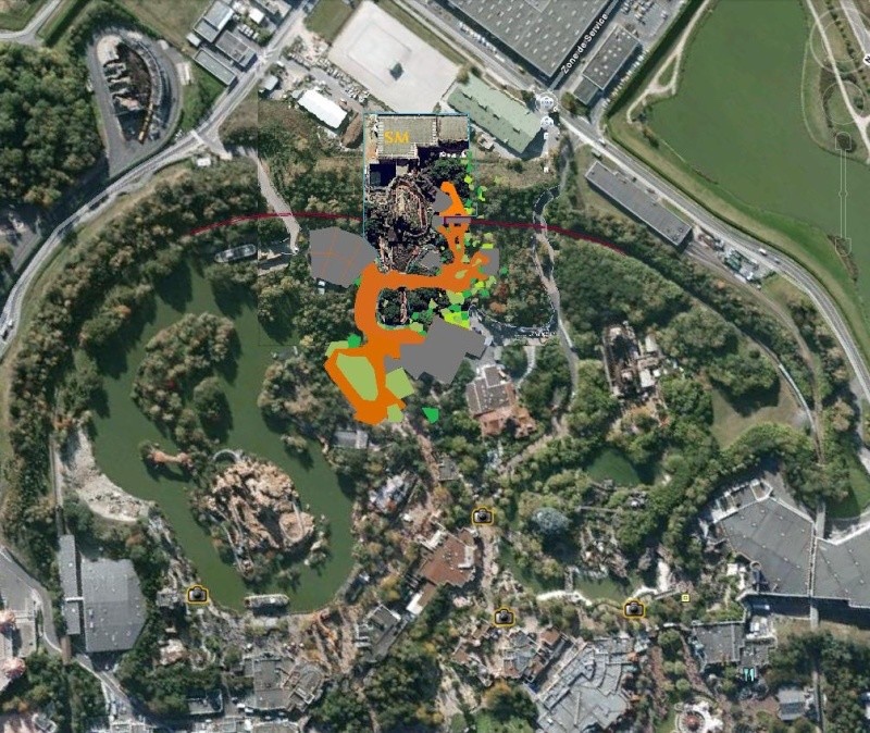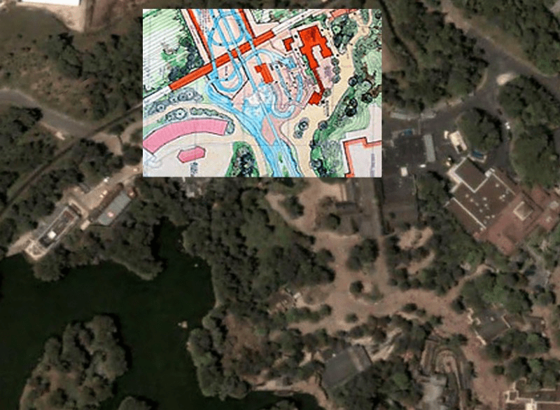 As seen in the photos, the ride would be located in the back of Frontierland. This would attract more guests to this normally rather deserted area. Just like in WDW, the train would pass under the attraction, with the station being relocated or integrated.