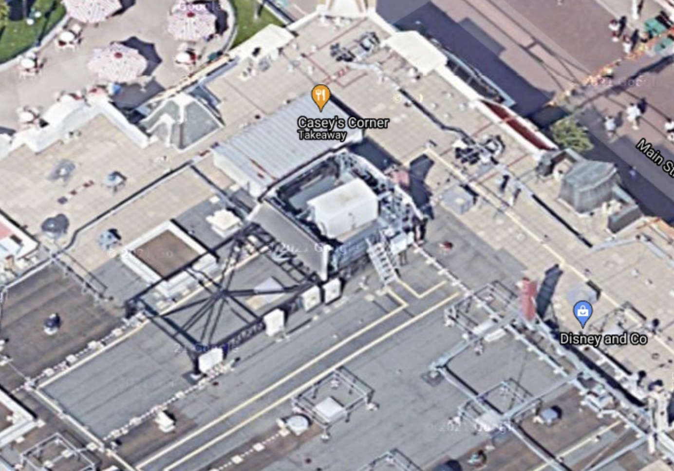 The projectors are located on Main Street on the roof of Gibson Girl and Casey’s Corner. Can you spot them in the picture below?