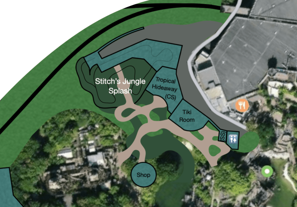 Last but not least, a Stitch family ride, Stitch’s Jungle Splash: An interactive boat ride (in the plan a retheme of Europapark’s Whale Adventures – Northern Lights was used to estimate the required space) that lets guests shoot water at moving and interactive targets and characters – and other guests (who can also retaliate from several spots in the queue).