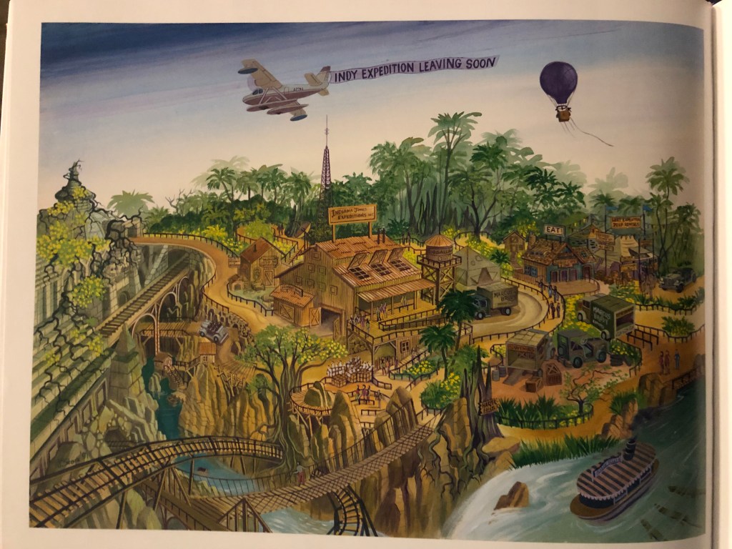 Now, what we get in this map is very limited because this isn’t a concept art, it’s just a Fun Map souvenir, so there would be more things included such as shopping, a restaurant and there were even rumors of an indoor show. With this mini-land the Disneyland Park would feature even more advanced technology. The “Jeep attraction” described in the original concept ended up being built in Anaheim. The “Indiana Jones and the Temple of the Forbidden Eye” opened in 1995 to an amazing reaction from fans. It was a huge hit and to this day remains as one of the parks signature attractions.