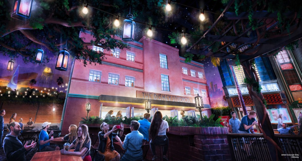 To really make this whole area feel alive, a huge Los Angeles skyline will surround all the buildings inside Studio 1, filled with details like the iconic sorcerer’s Mickey hat building behind the Disney Studios Façade, the legendary Griffith Observatory, the Hollywood sign on the hills and so many more, these that will be brought to life with special projection mapping with all kinds of different animations from planes taking off to neon lights blinking, fireworks in the distance or moving sky tracer lights. At the back of World Premiere is the Disney Theatre, an all-new façade filled with all kinds of detail, this is where you will be transported into the many immersive worlds of Disney, Marvel and Pixar as if you were stepping into the screen itself.